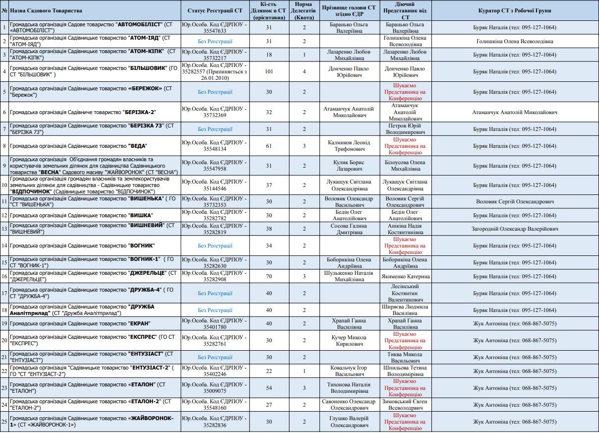 - Делегатами та делегуючими виборцями можуть бути члени СТ, які мають у своїй власності ділянку у відповідному СТ або їх уповноважені представники з числа першого кола їх родичів (чоловік, жінка, дочка, син).